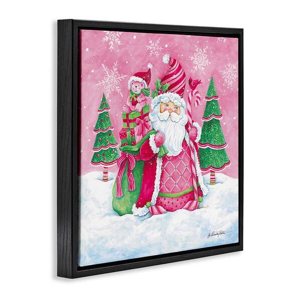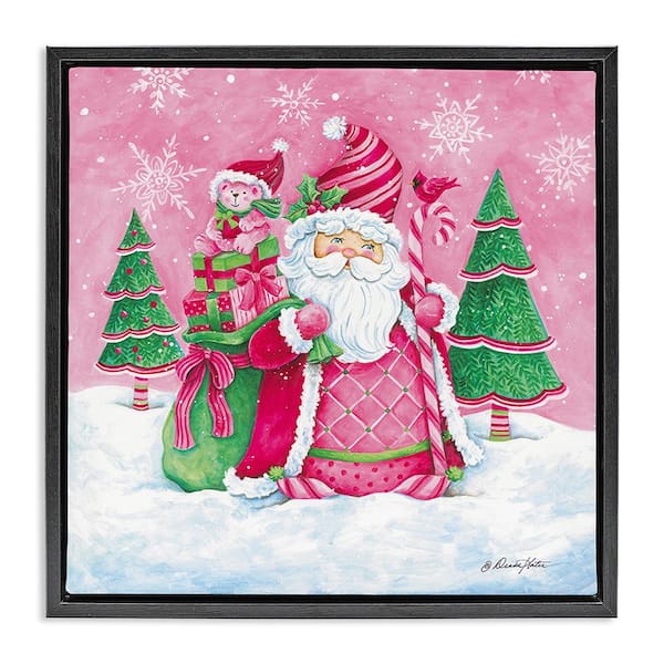 Pink and Green Santa Scene by Diane Kater 1-Piece Floater Frame Graphic Print Nature Poster Art Print 25 in. x 25 in.