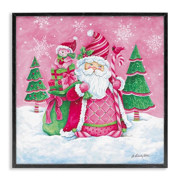 Pink and Green Santa Scene by Diane Kater 1-Piece Framed Graphic Print Nature Poster Art Print 17 in. x 17 in.
