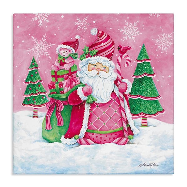 Pink and Green Santa Scene byDiane Kater 1-Piece Unframed Graphic Print Nature Poster Art Print 30 in. x 30 in.