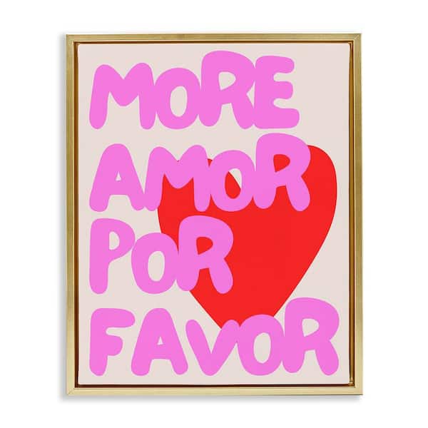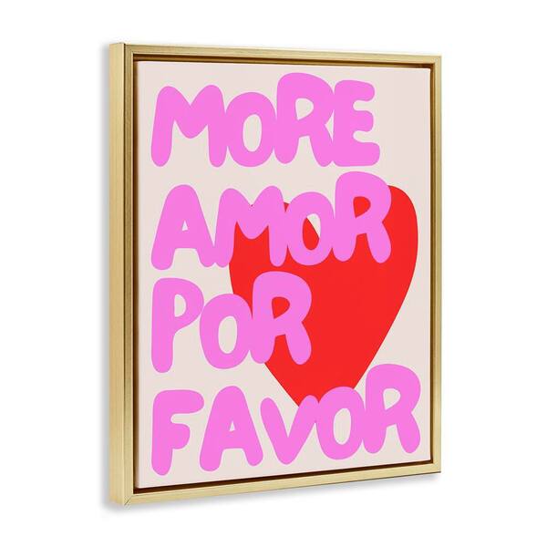 Pink and Red More Amor by House of Lulu Gold Floater Frame Typography Graphic Art Print 21 in. x 17 in.