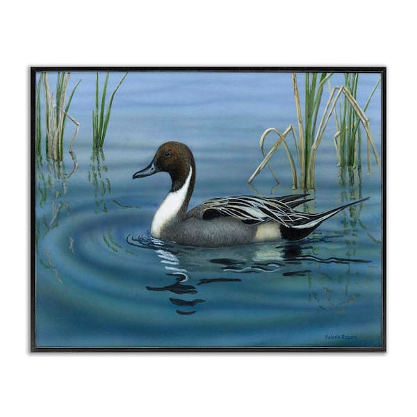 Pintail Loon in Pond by Valerie Rogers Black Framed Animal Giclee Art Print 11 in. x 14 in.