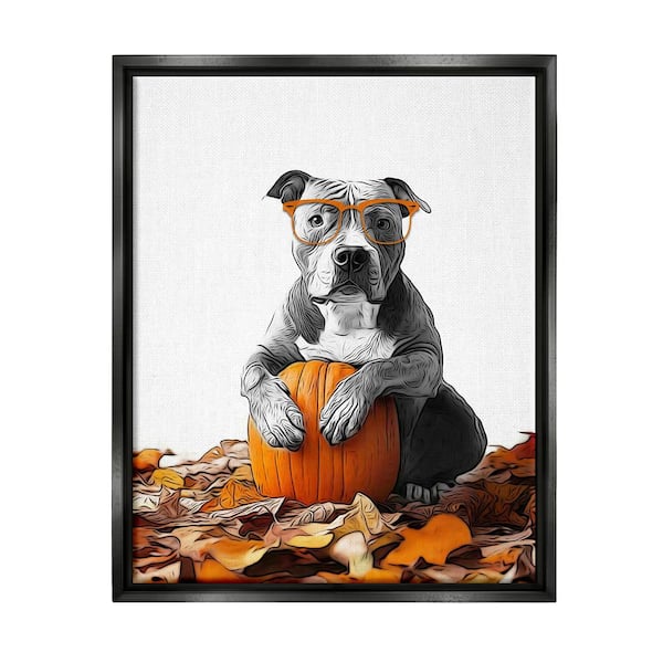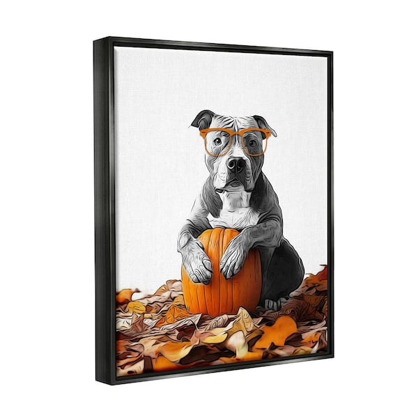 Pit Bull Autumn Leaves by Annalisa Latella 1 Piece Floater Frame Graphic Print Animal Poster Art Print 31 in. x 25 in.