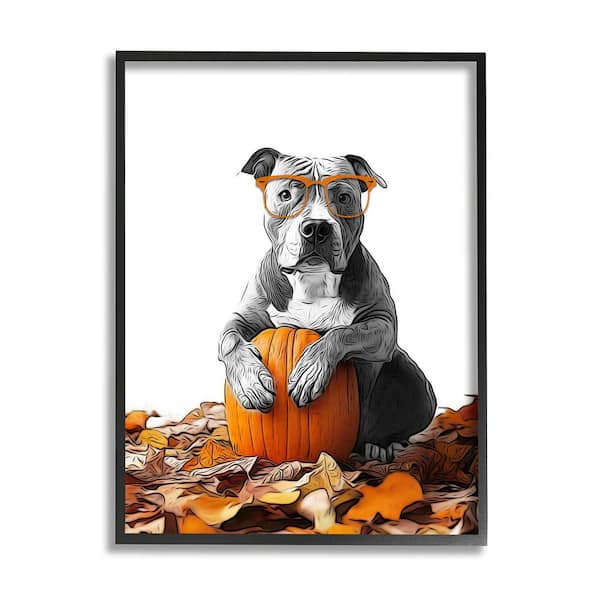 Pit Bull Autumn Leaves by Annalisa Latella 1-Piece Framed Graphic Print Animal Poster Art Print 30 in. x 24 in.
