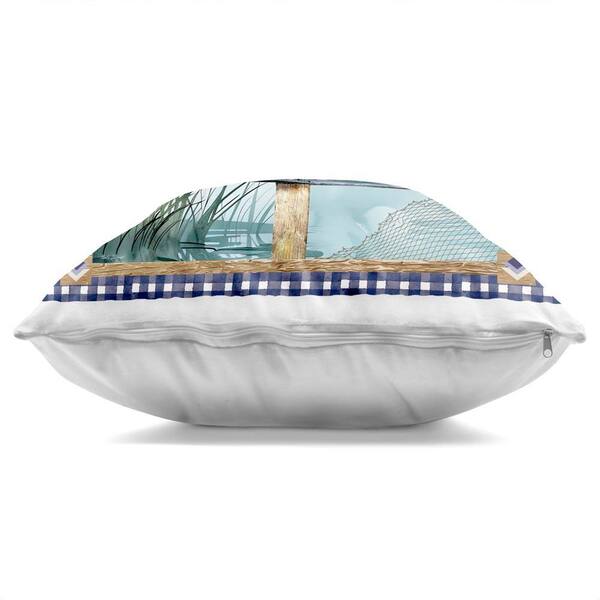 Plaid Border Lake Sign Blue Abstract Polyester 18 in. X 18 in. Throw Pillow