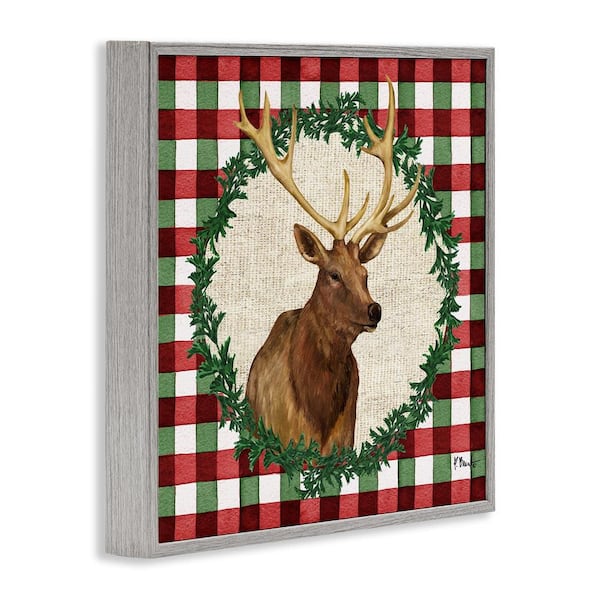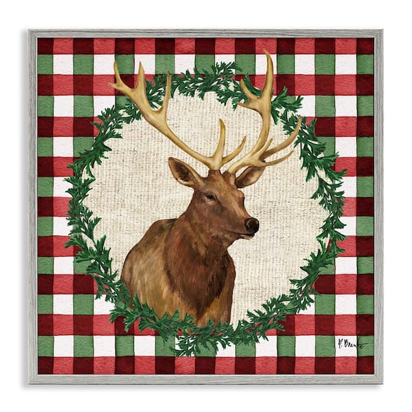 Plaid Holiday Elk by Paul Brent Gray Framed Animal Giclee Art Print 24 in. x 24 in.