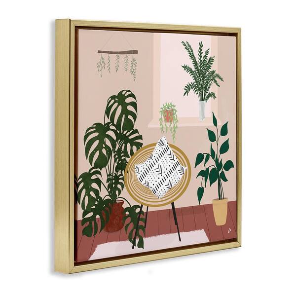 Plant Filled Boho Space by Lydia Orange Gold Floater Frame Home Graphic Art Print 25 in. x 25 in.