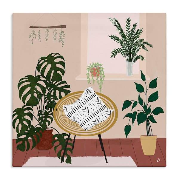 Plant Filled Boho Space by Lydia Orange Unframed Home Graphic Art Print 24 in. x 24 in.
