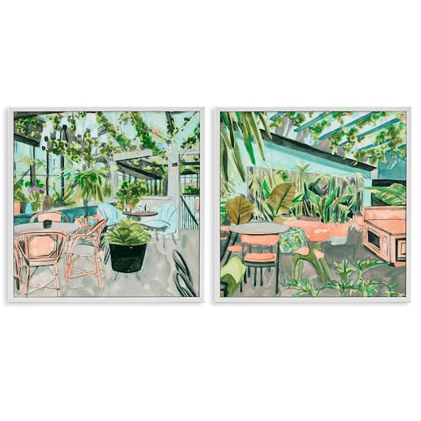 Plant Filled Cafe Views by Melissa Wang 2 Pieces White Framed Home Giclee Art Print 24 in. x 24 in.