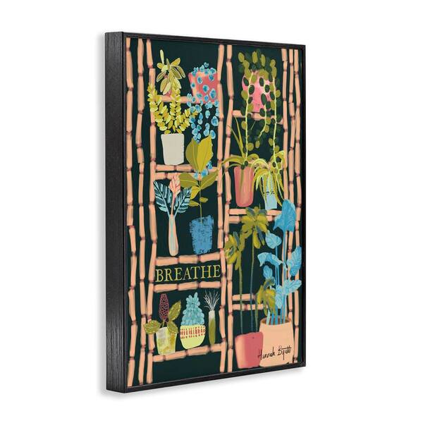 Plant Shelf on Black by Hannah Byatt Black Framed Nature Giclee Art Print 24 in. x 16 in.