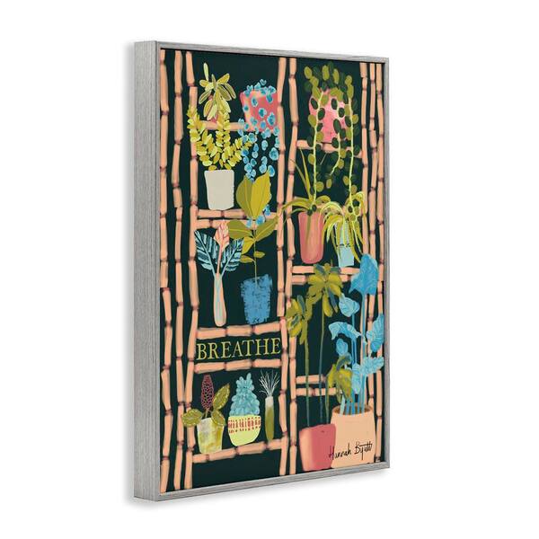 Plant Shelf on Black by Hannah Byatt Gray Framed Nature Giclee Art Print 24 in. x 16 in.