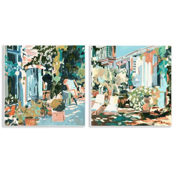 Plants on Town Buildings by Melissa Wang 2 Pieces Unframed Abstract Graphic Art Print 12 in. x 12 in.