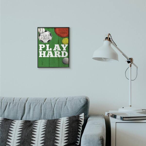 "Play Hard Sports Equipment Green Word Design" by The Saturday Evening Post Framed Wall Art 11 in. x 14 in.