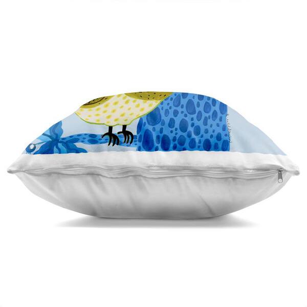 Playful Owls in Tree Blue Abstract Polyester 18 in. x 18 in. Throw Pillow