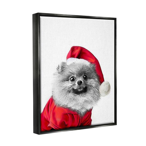 Pomeranian in Santa Hat by Annalisa Latella 1-Piece Floater Frame Graphic Print Animal Poster Art Print 21 in. x 17 in.