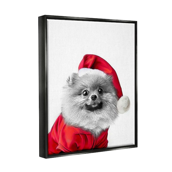 Pomeranian in Santa Hat by Annalisa Latella 1-Piece Floater Frame Graphic Print Animal Poster Art Print 31 in. x 25 in.