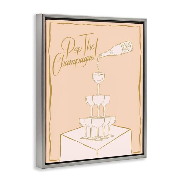 Pop The Champagne Phrase by Hey Bre Creative Studio Gray Floater Frame Food Graphic Art Print 31 in. x 25 in.
