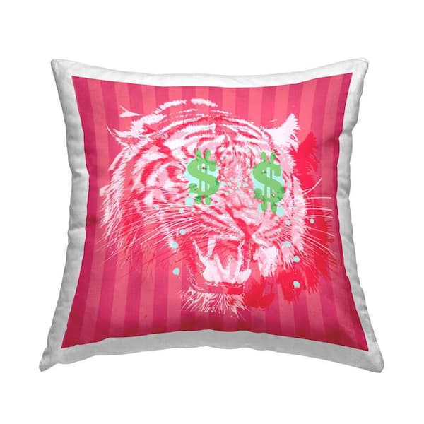 Pop Tiger on Stripes Pink Striped Polyester 18 in. x 18 in. Throw Pillow