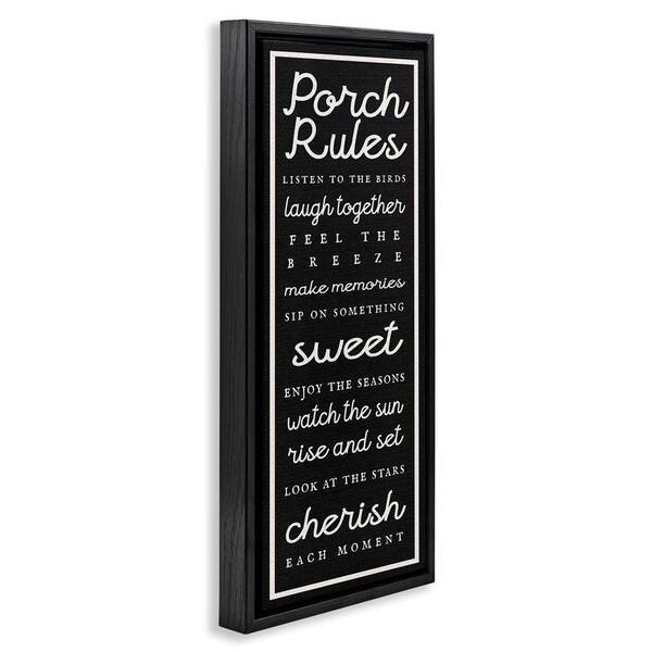 Porch Rules on Black by Lil' Rue Black Floater Frame Typography Graphic Art Print 31 in. x 15 in.