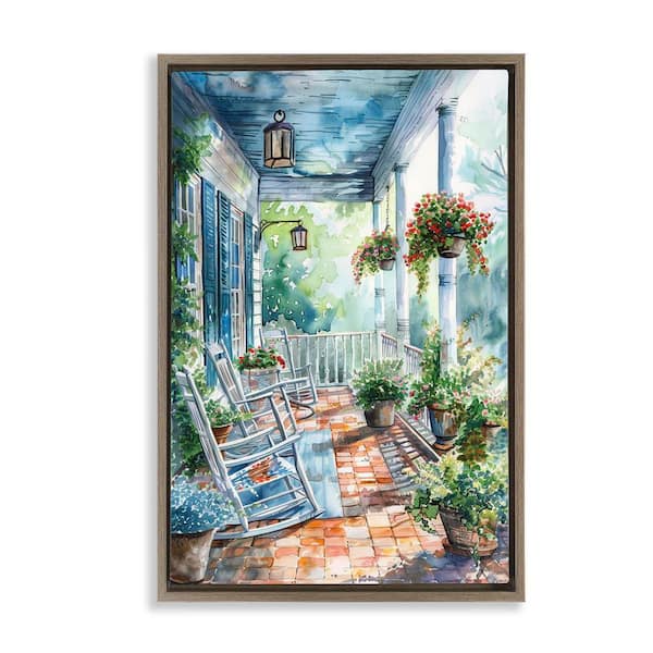 Potted Geraniums Porch by Franklyn Gregory Brown Floater Frame Architecture Graphic Art Print 31 in. x 21 in.