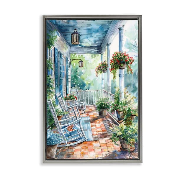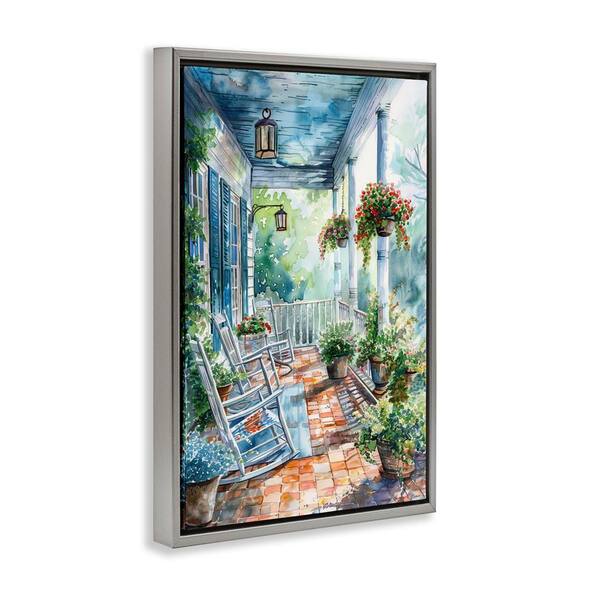 Potted Geraniums Porch by Franklyn Gregory Gray Floater Frame Architecture Graphic Art Print 31 in. x 21 in.