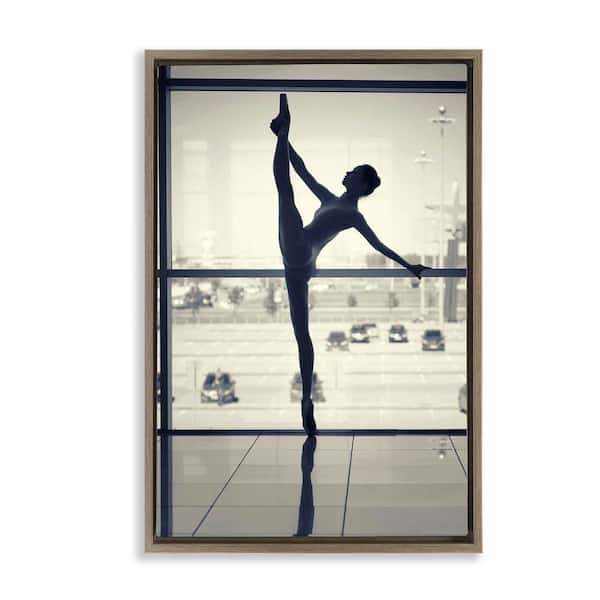 Practicing Ballerina Stance by Incado Brown Floater Frame People Graphic Art Print 31 in. x 21 in.