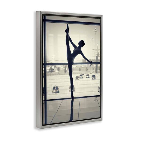 Practicing Ballerina Stance by Incado Gray Floater Frame People Graphic Art Print 25 in. x 17 in.