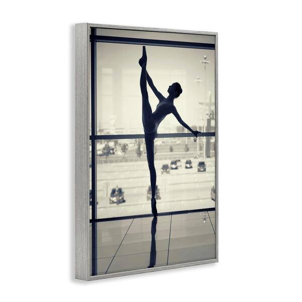 Practicing Ballerina Stance by Incado Gray Framed People Giclee Art Print 30 in. x 20 in.