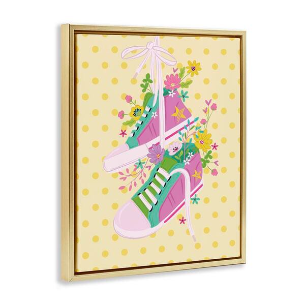 Preppy Floral Sneakers by Lisa Perry Whitebutton Gold Floater Frame Abstract Graphic Art Print 31 in. x 25 in.