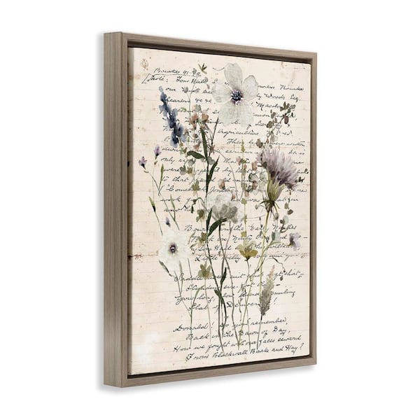 Pressed Flowers on Page by Carol Robinson Brown Floater Frame Nature Graphic Art Print 31 in. x 25 in.