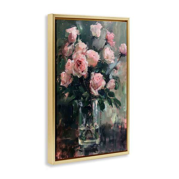 Pretty Pink Roses Vase by LSR Design Studio Gold Floater Frame Nature Graphic Art Print 25 in. x 17 in.