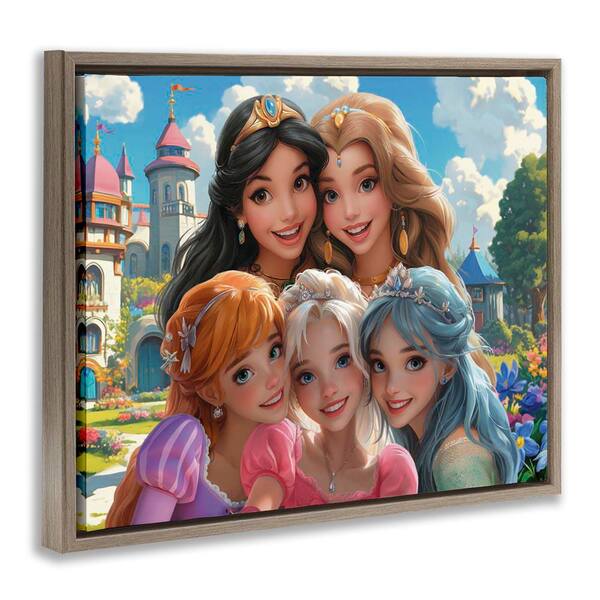 Princess Selfie by Castle by Image World Brown Floater Frame People Graphic Art Print 17 in. x 21 in.