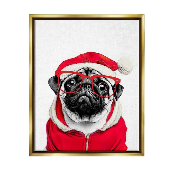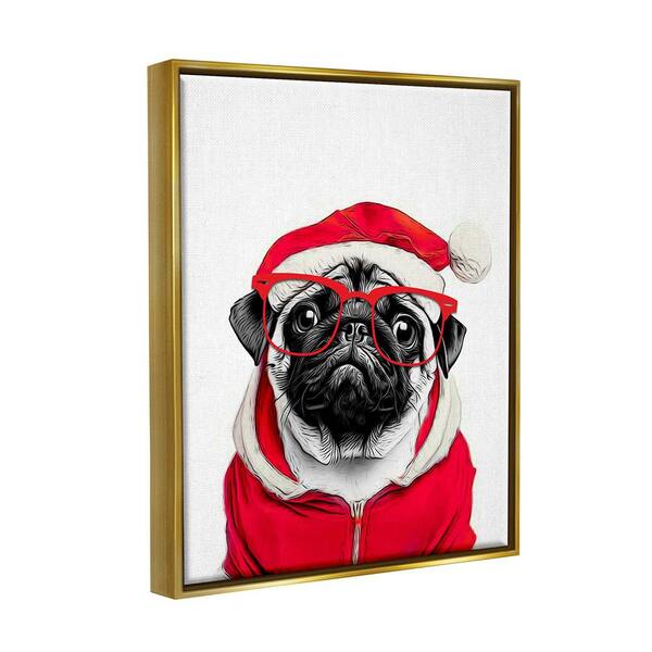 Pug in Santa Hat by Annalisa Latella 1 Piece Floater Frame Graphic Print Animal Poster Art Print 21 in. x 17 in.