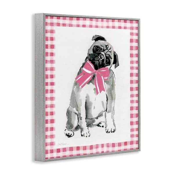 Pug with Plaid Border by Carol Robinson Gray Framed Animal Giclee Art Print 30 in. x 24 in.