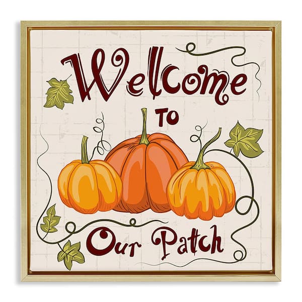 Pumpkin Patch Welcome by Diane Labombarbe 1-Piece Floater Frame Graphic Print Typography Art Print 25 in. x 25 in.