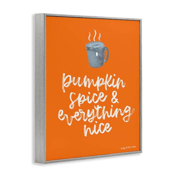 Pumpkin Spice Steaming Coffee Mug Fall Calligraphy by Cecily Moore Gray Framed Graphic Food Art Print 16 in. x 20 in.