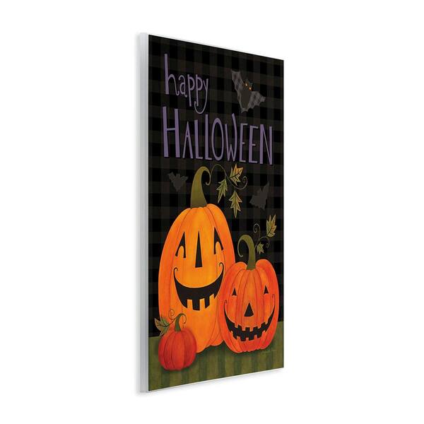 Pumpkins & Bat on Plaid by Bernadette Deming 1-Piece Unframed Graphic Print Typography Poster Art Print 15 in. x 10 in.