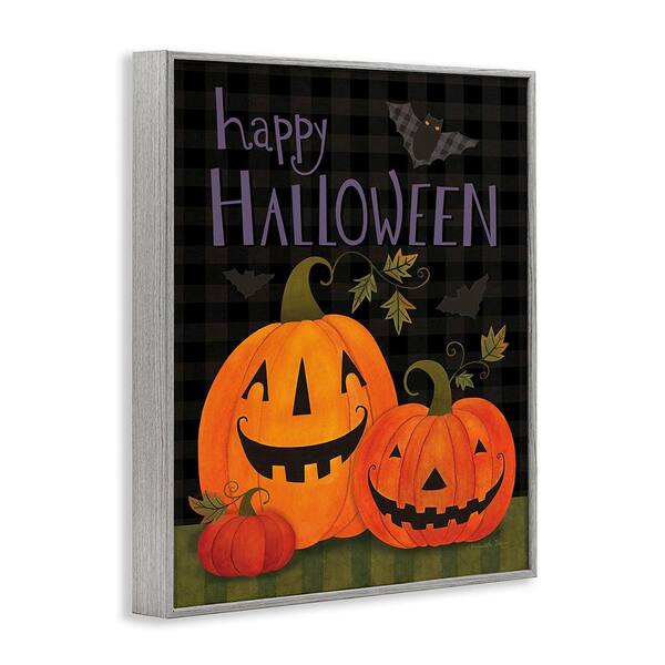 Pumpkins and Bat on Plaid by Bernadette Deming 1-Piece Framed Graphic Print Typography Poster Art Print 14 in. x 11 in.