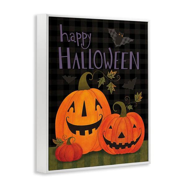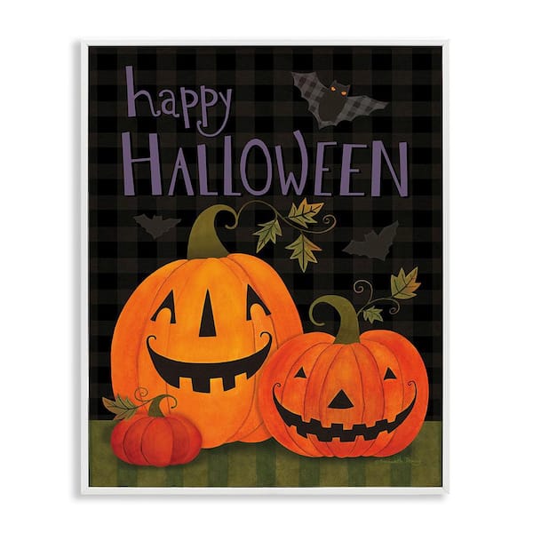 Pumpkins and Bat on Plaid by Bernadette Deming 1-Piece Framed Graphic Print Typography Poster Art Print 30 in. x 24 in.