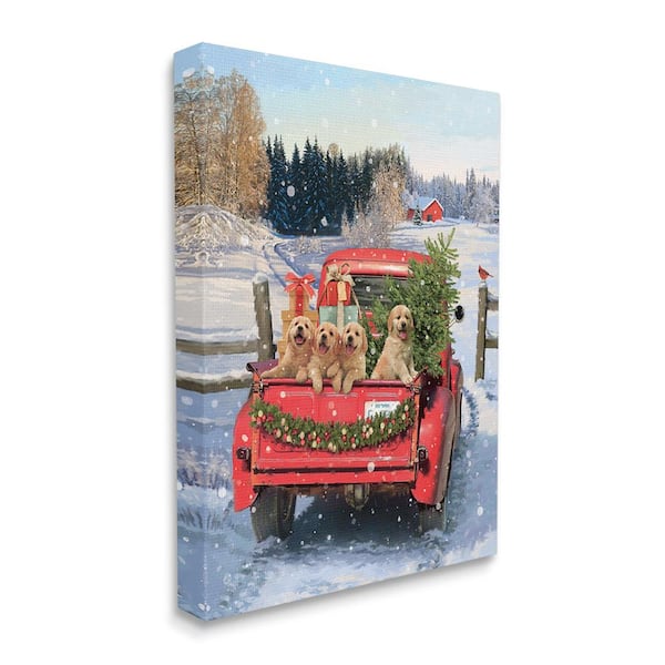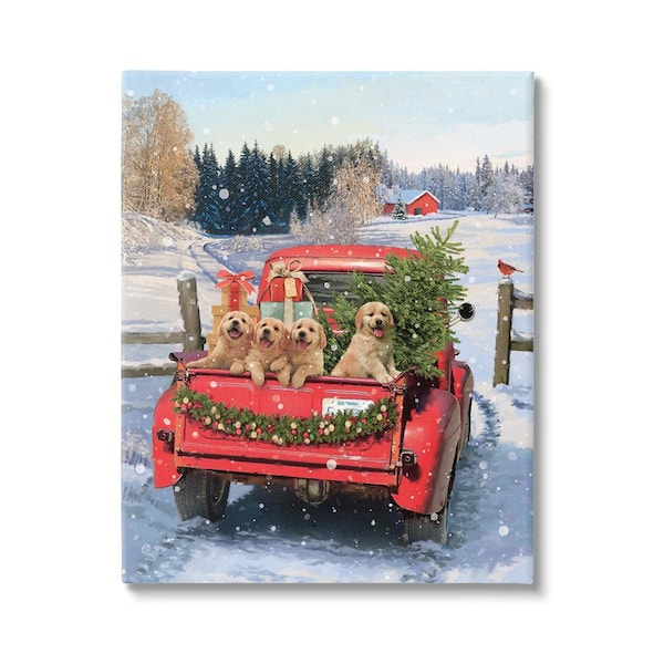 Puppies in Holiday Truck byJason Kirk 1-Piece Unframed Graphic Print Travel Poster Art Print 20 in. x 16 in.