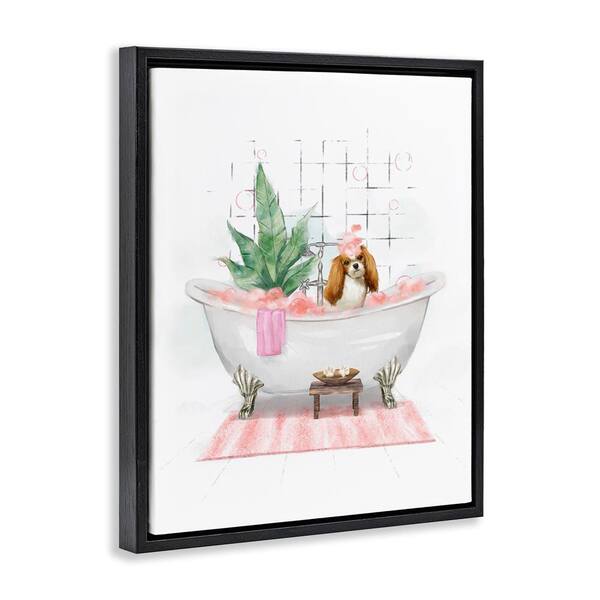 Puppy in Bathtub Pastel by Ziwei Li Black Floater Frame Animal Graphic Art Print 21 in. x 17 in.