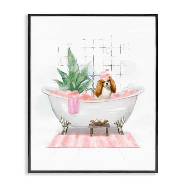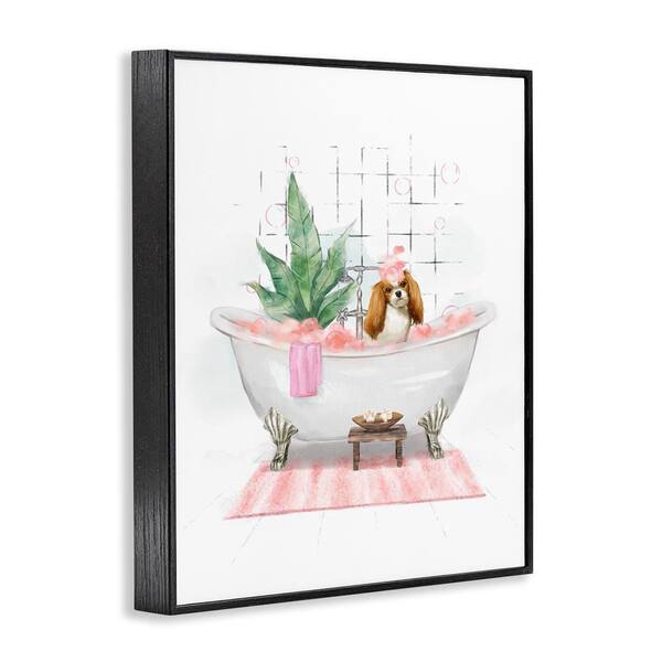 Puppy in Bathtub Pastel by Ziwei Li Black Framed Animal Giclee Art Print 30 in. x 24 in.