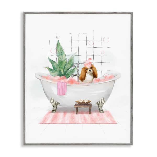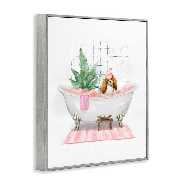Puppy in Bathtub Pastel by Ziwei Li Gray Framed Animal Giclee Art Print 20 in. x 16 in.