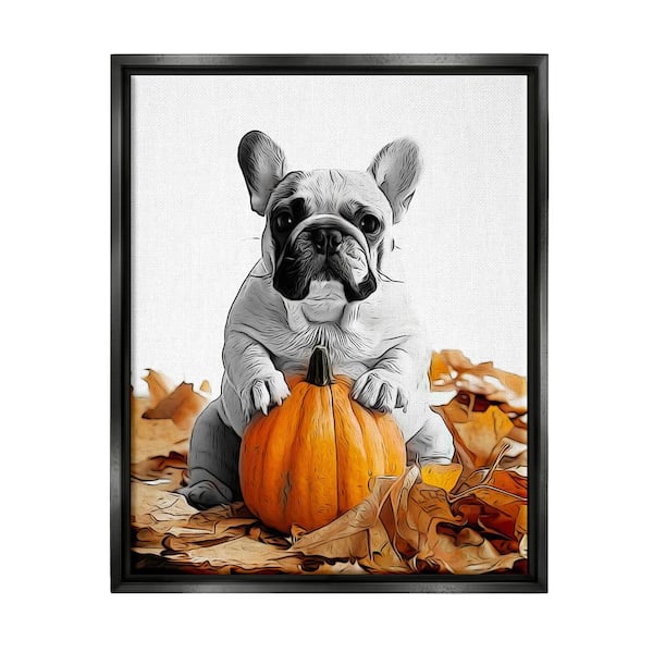 Puppy with Fall Pumpkin by Annalisa Latella 1-Piece Floater Frame Graphic Print Animal Poster Art Print 31 in. x 25 in.