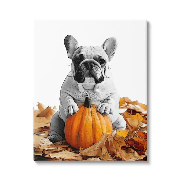 Puppy with Fall Pumpkin byAnnalisa Latella 1 Piece Unframed Graphic Print Animal Poster Art Print 20 in. x 16 in.