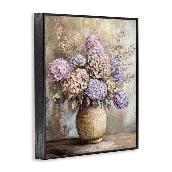 Purple Hydrangea Pottery by Petal Prints Design Black Framed Nature Giclee Art Print 20 in. x 16 in.