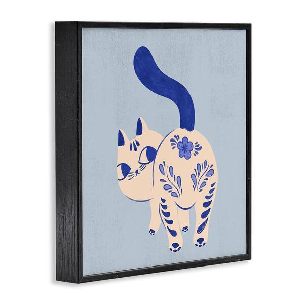 Purrcelin Patterned Cat by Carrie Cantwell Black Framed Animal Giclee Art Print 17 in. x 17 in.