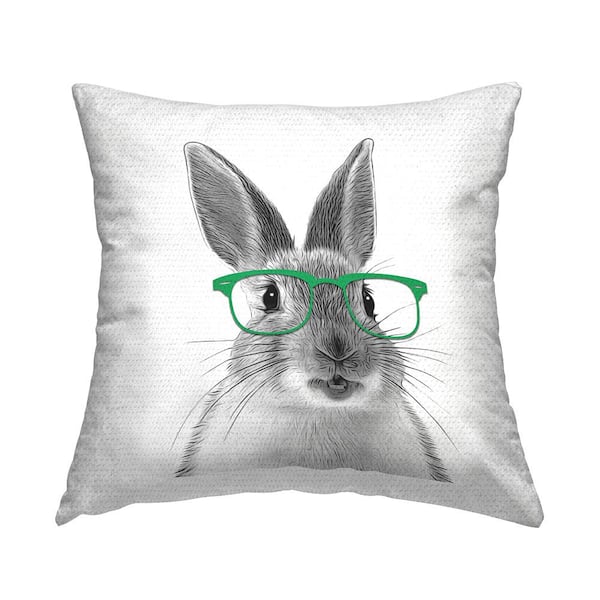 Rabbit in Green Eyeglasses Grey Square Outdoor Throw Pillow