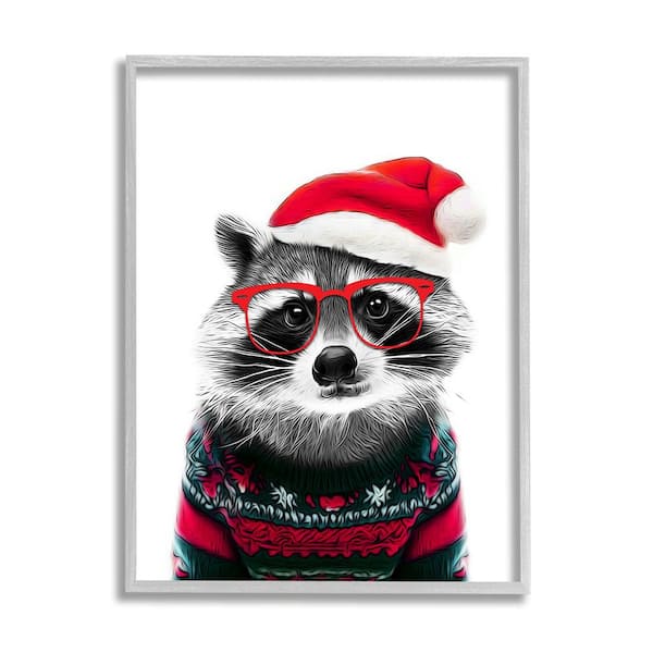 Raccoon in Holiday Sweater by Annalisa Latella 1-Piece Framed Graphic Print Animal Poster Art Print 30 in. x 24 in.