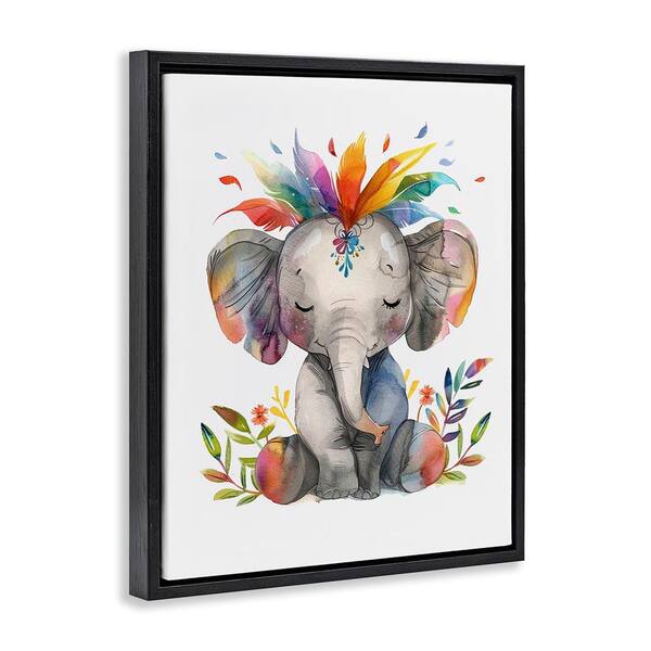Rainbow Blooms Elephant by LSR Design Studio Black Floater Frame Animal Graphic Art Print 21 in. x 17 in.