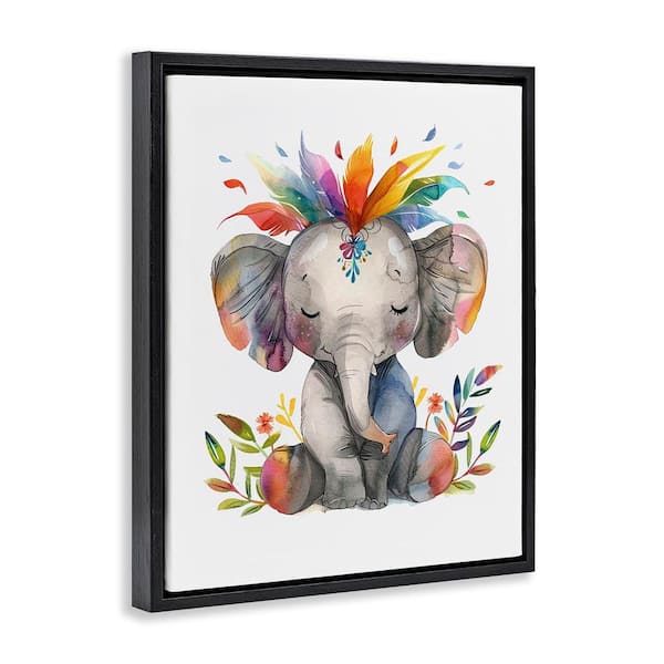 Rainbow Blooms Elephant by LSR Design Studio Black Floater Frame Animal Graphic Art Print 31 in. x 25 in.